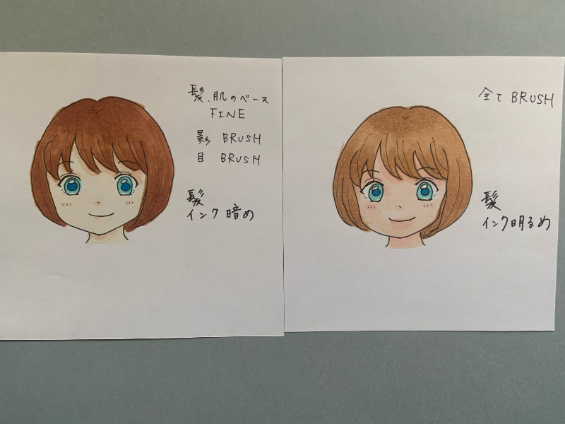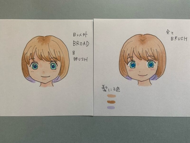 BROADの方はペン先の感じが目立つのに対し、BRUSHはなじんでグラデーションになる感じがわかるでしょうか。