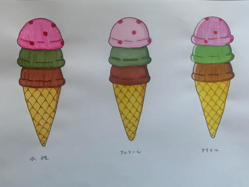 実例比較!3種のマーカーのみで「アイス」を塗ってみた