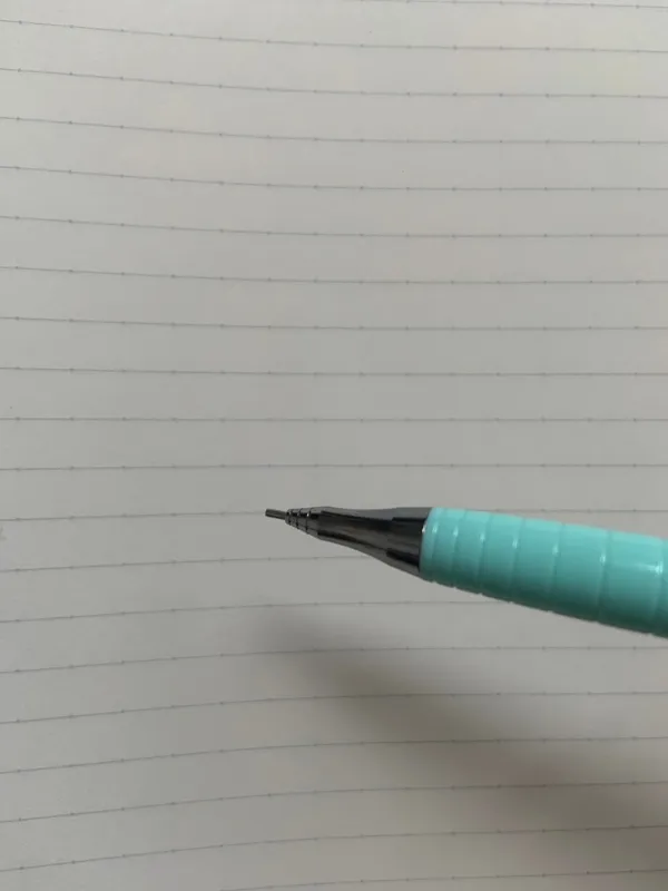 また、芯がガードパイプに覆われている状態で書くので、書いていてちょっとひっかかるような感触があって書き心地がほかのシャーペンと少し異なるな、という印象があります。